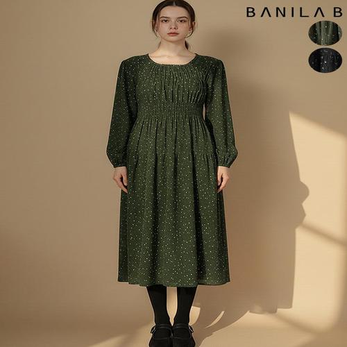 [바닐라비]여성 허리밴딩 배색 카라 롱원피스