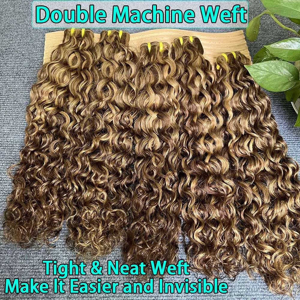 허니 블론드 하이라이트 딥 웨이브 번들 22 인치 P4/27 옹 브르 싱글 번들 습식 및 물결 모양 번들 인간 헤어 하이라이트 브라운 컬러