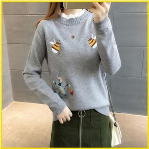 TEMU 여성용 한국-일본 스타일 풀오버 스웨터 - 칼라 긴소매 레이스 디테일 루즈핏 크롭탑, 반투명 사계절 캐주얼 레이어링 필수 아이템, 우아한 니트웨어, , 섬세한 니트, 트렌디한 아웃핏