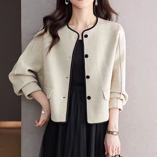 TEMU 여성용 가을 겨울 스웨터 풀오버, 안팎으로 편안하고 따뜻하게 착용 가능. 우아한 디자인과 대조적인 칼라 트리밍, 섬세한 메탈 버튼 장식; 세탁기 및 드라이클리닝 가능