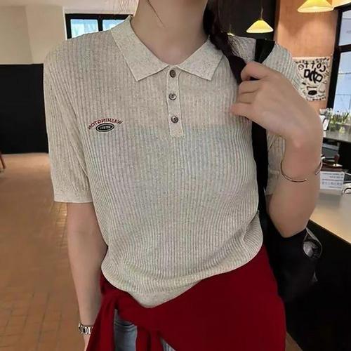[에이치플러스몰]여성 반팔 카라넥 니트 골지 티셔츠 여름 데일리룩
