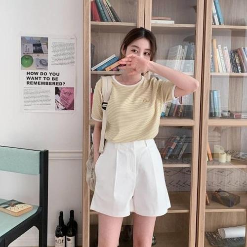 [다잇템][다잇템] 여자 잔잔 조각 바스트 줄무늬 반소매 콘트라스트 티셔츠_23328410_588872