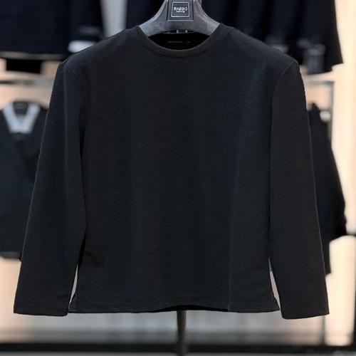 [바쏘옴므]바쏘옴므 블랙 면 혼방 텍스처드 긴팔 라운드 티셔츠 A5KR09A BK