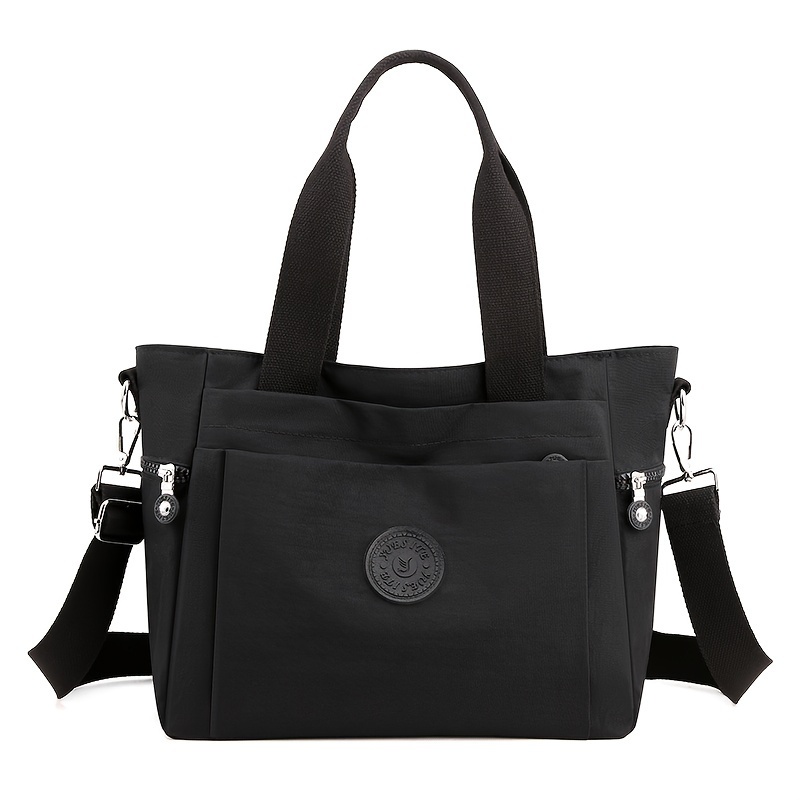 TEMU 여성을 위한 블랙 컬러 나일론 대용량 어깨 가방, 패치가 있는 다용도 여행용 토트백, 캐주얼 휴가 전용 핸드백, 필수 여행 액세서리, 크리스마스 및 생일 선물, 스포츠 및 휴가 패키지에 이상적인 제품