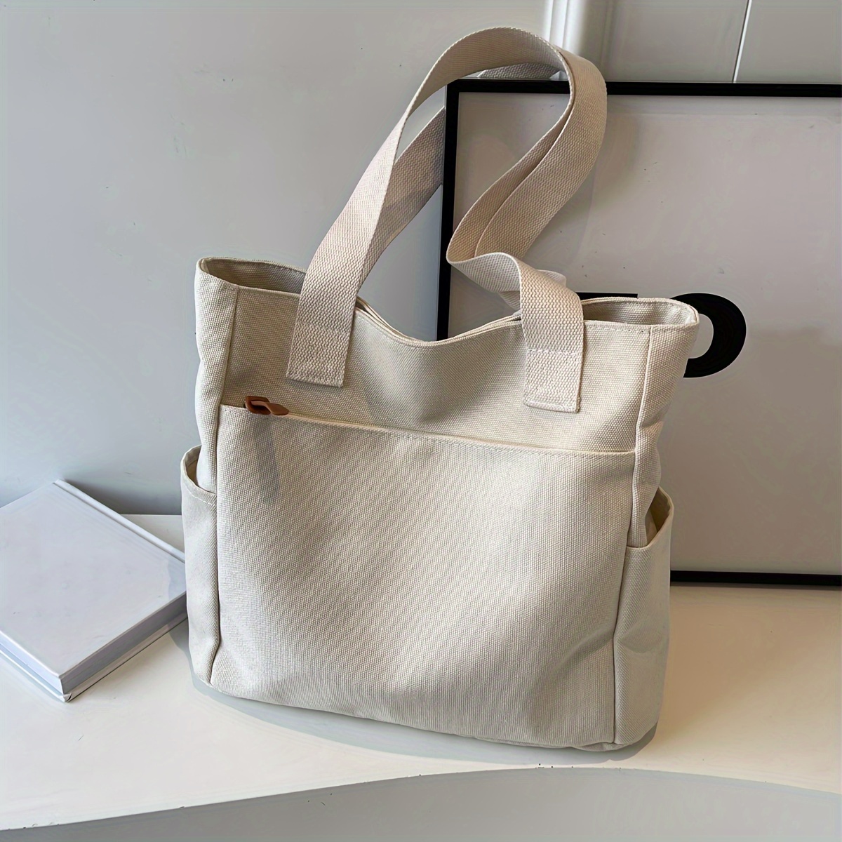 TEMU 다양한 포켓이 있는 빈티지 토트 백, 작업 및 일상적인 용도로 멋진 여성용 어깨 백, 단색, 천으로 된 안감, 지퍼 잠금, 손세탁만, 일상적인 어깨 백| 토트|튼튼한 핸들 백
