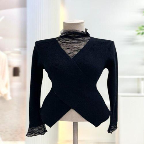 [스타일리쉬바이피클]레이스 랩 슬림 골지 니트 스웨터