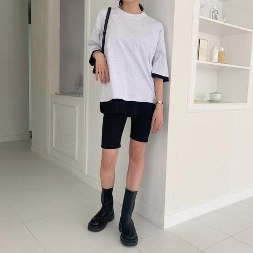 [옷자락]여자 민무늬 SS 바이크 탄력 하프 데일리 레깅스