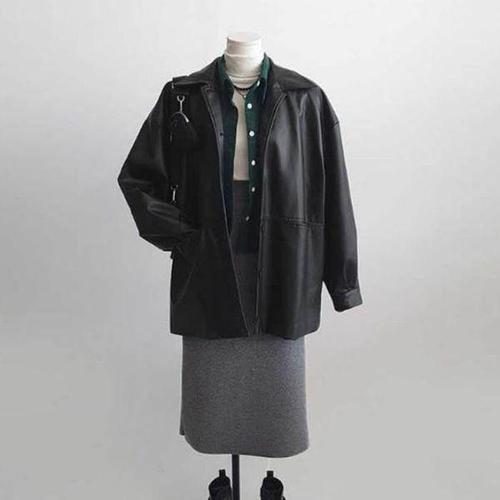 [에이치플러스몰]바이크핏 루즈핏 코디 가죽자켓 여자자켓 편안한 봄