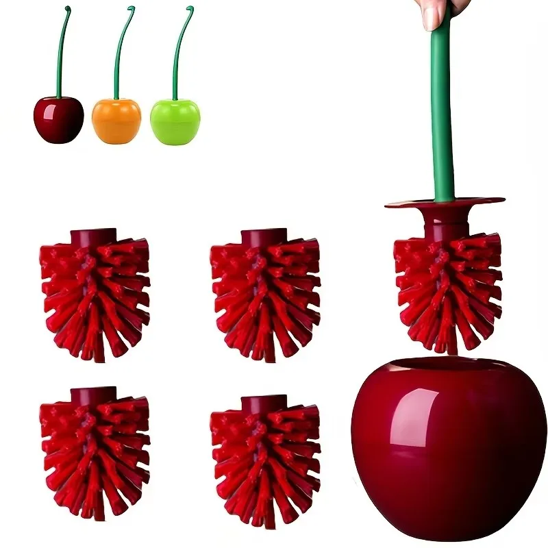 빨간색 주황색 녹색 체리 모양 화장실 브러시 세트 긴 손잡이 욕실 코너 청소용 교체 가능한 나일론 부드러운 브리슬 액세서리