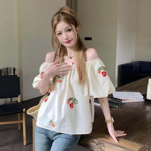 [셀럽하우스]화사한 HZLW7230 꽃무늬 퍼프소매 바캉스룩 오프숄더 블라우스
