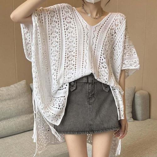 [셀럽하우스]브이넥 UBIR8388 그물니트 언발기장 포인트룩 바캉스룩