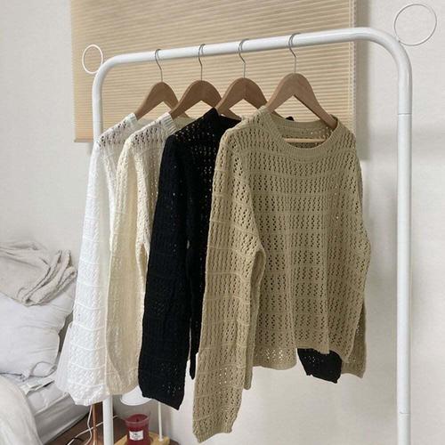 [셀럽하우스]여름 FECK0443 긴팔 펀칭 니트 루즈핏 레이어드 바캉스룩