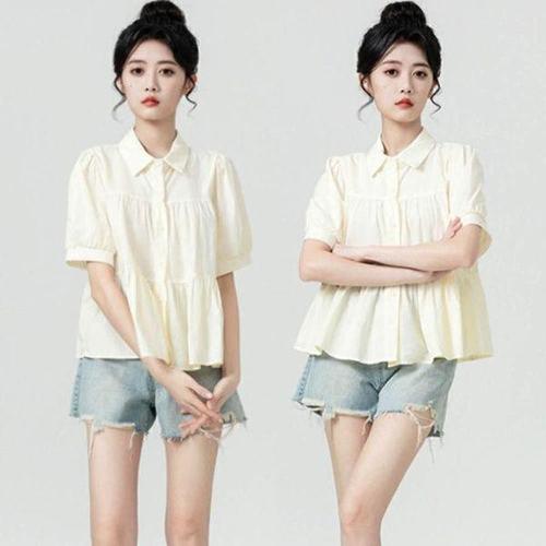 [에이치플러스몰]여성 플라워 블라우스 프릴 루즈핏 셔링 소매 봄 신상