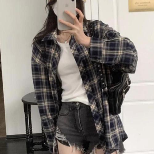 [신상오픈런]긴팔봄남방 체크 카라넥 여성 코튼셔츠 세미루즈핏