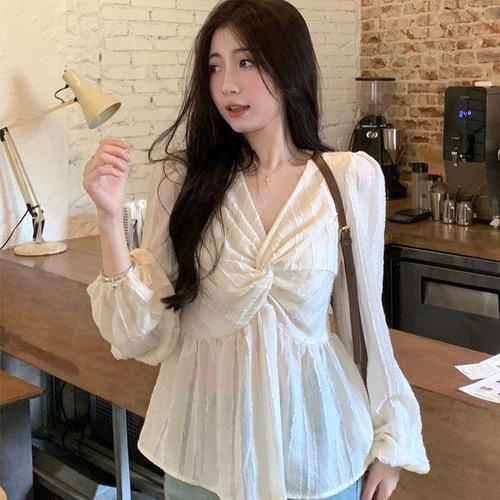 [무드수]체형커버 꼬임 프렌치 블라우스 여리여리 데이트룩 봄신상