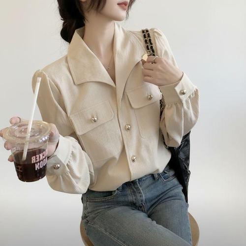 [신상오픈런]여성용 봄가을 데일리 카라 포켓 셔츠 블라우스