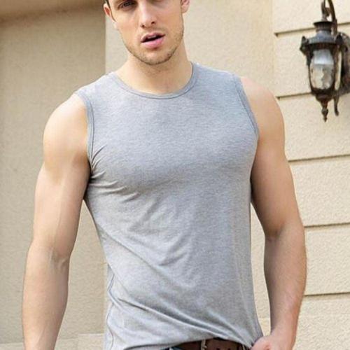 남성 슬리브리스 머슬핏 짐웨어 라운드 넥 스판 나시티 박스핏 WFMZVVC