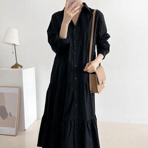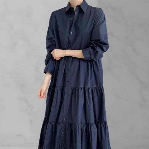 [다잇템]여성 박스핏 잔주름 FW 남방 티어드 롱드레스