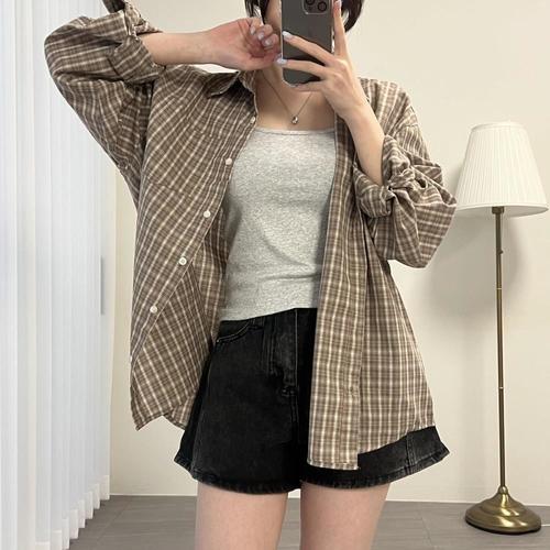 [다잇템][다잇템] 여자 환절기 언발 레이어드용 가을체크 박스핏 주머니 셔츠_22837673_588872