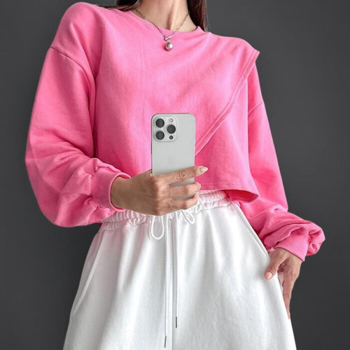 [옷자락] 여성 크롭 튤립 언발란스 박스핏 방송 댄스 의상 퍼프 맨투맨