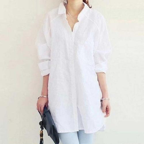 [유야]여성 옆단추 박시 무지 롱 셔츠 원피스 -FNB0105- 봄 가을