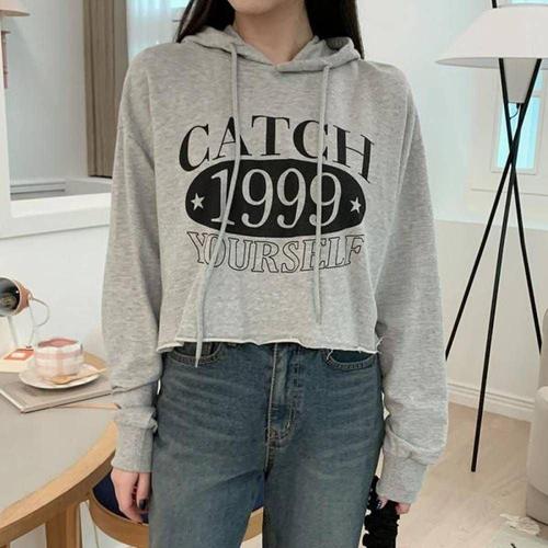 옷자락 / 여자 양기모 가오리핏 퍼프 크롭 박시 후드 면 티셔츠