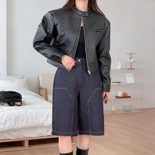 [신상오픈런]여성용 다이아몬드 버튼 집업 크롭 박시 퀼팅 가을 재킷