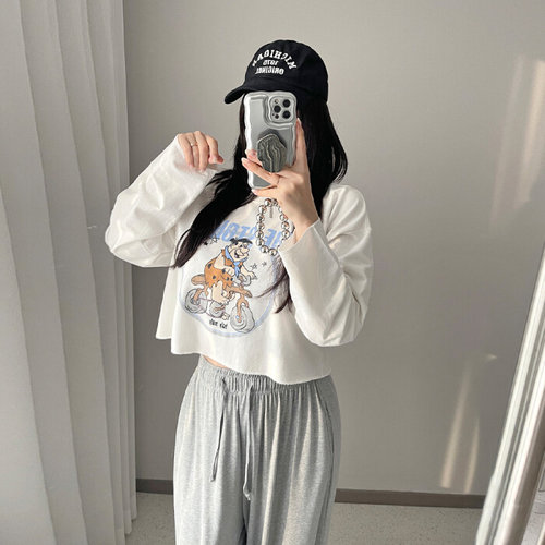 글램핏 / 프린팅 박시 루즈핏 크롭 컷팅 긴팔 티셔츠 3컬러
