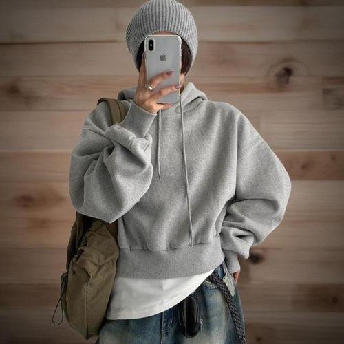 [신상오픈런]여성 기모 퍼프 크롭 후드 박시 티셔츠