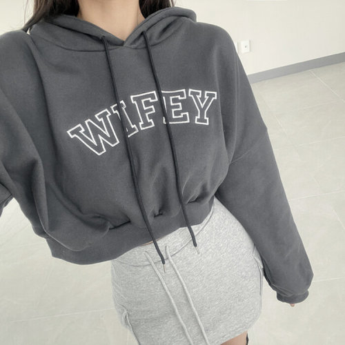 떳다그녀 바이즈 레터링 스웨터 봄 가을 데일리 세미크롭 박시 오버핏 후드티 니트 후드티셔츠