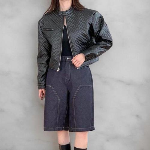 [옷자락]여성 다이아몬드 버튼넥 집업 크롭 박시 퀼팅 가을 자켓