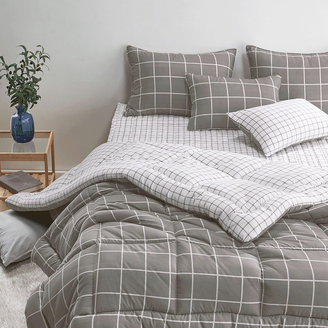 심플체크 그레이 고밀도 워싱 항균솜 차렵이불세트(SS/Q)