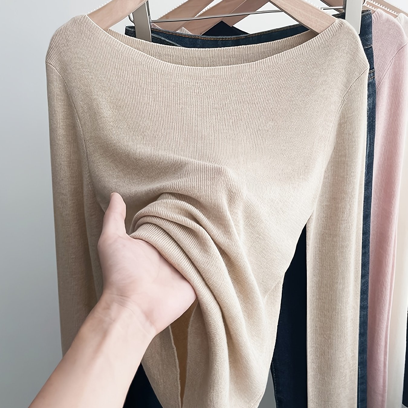 TEMU 봄, 가을, 겨울용 블렌드 에센셜 베이스 레이어. 사계절용. -블렌드 라지 라운드넥 풀오버. 파인라이트웨이트 스타일. 캐주얼 베이스 레이어. 출퇴근용으로 우아하고 편안함. 슬림핏, 경량, 단색, 심플한 스타일. Niannian