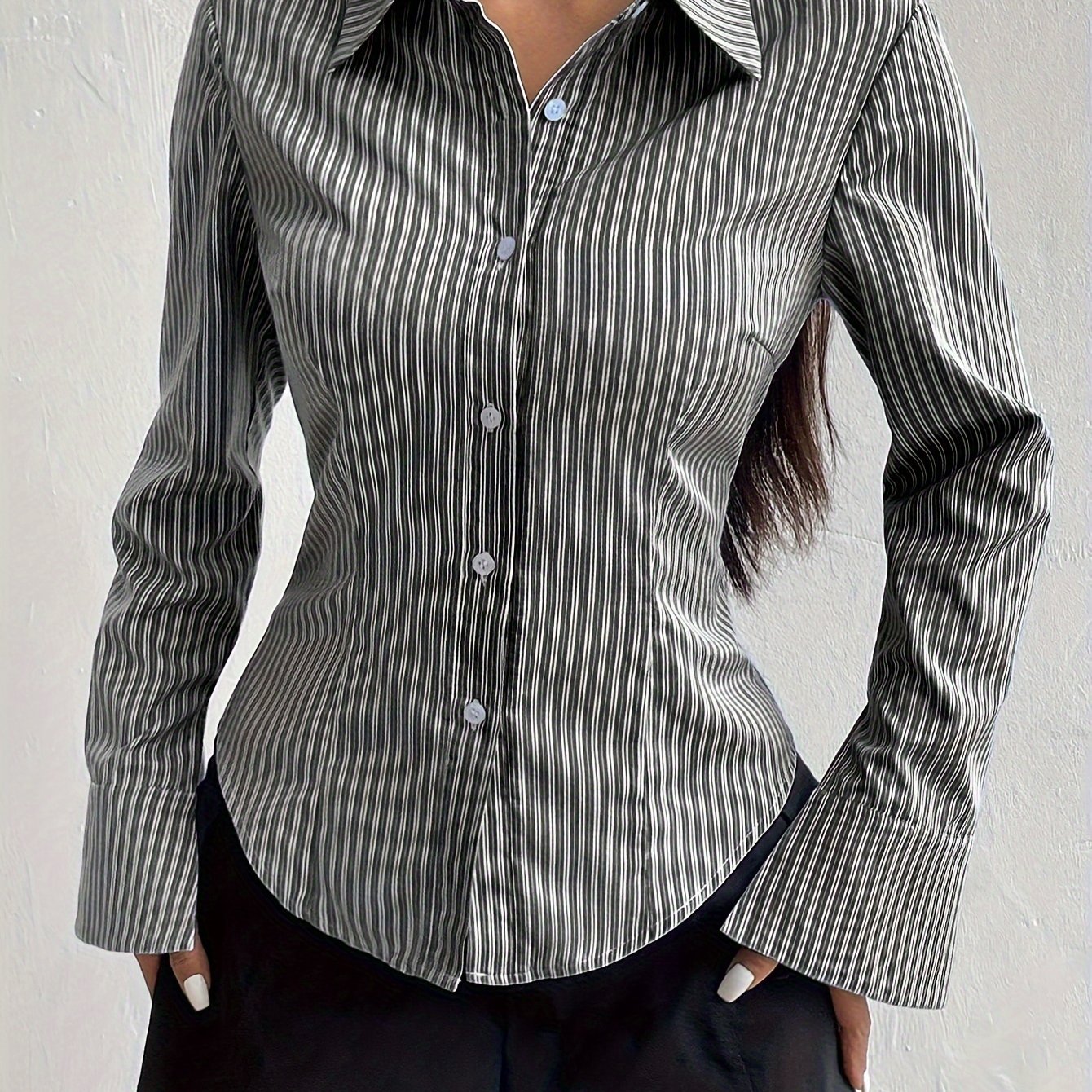 TEMU 우아한 폴리에스터 블라우스, 래펠 칼라, 버튼 디테일, 올 시즌 워븐 셔츠