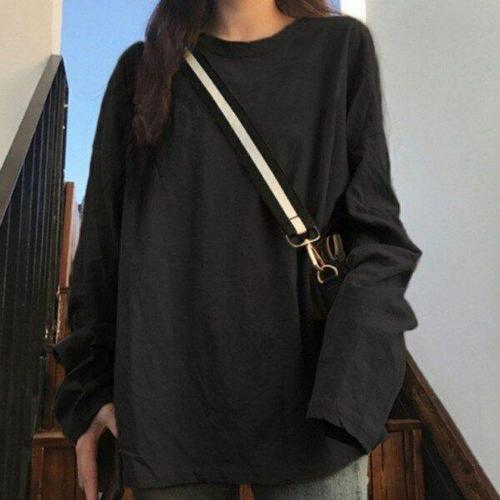 [모노무드]LMO 단색 레이디스 풀슬리브티 라운드탑 여성용 롱티 반팔티심플티 데일리