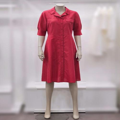 [최초가 89000원] [55~88] 린넨라이크 세미 A라인 반팔 플리츠 카라 원피스