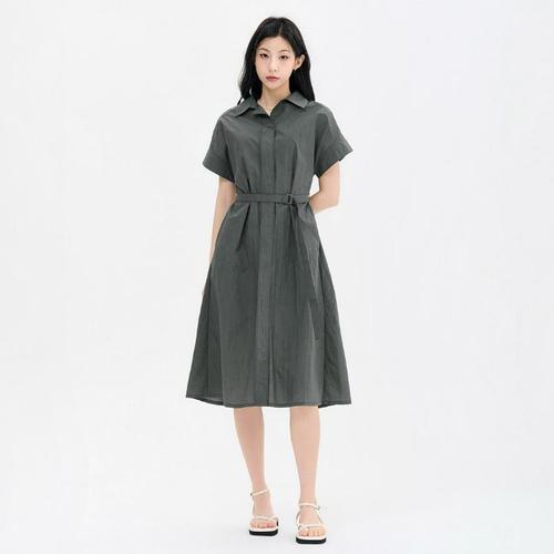 회색 퍼프소매 카라 원피스 롱드레스 여름 반팔 여성원피스 셔링 WFNQNAT
