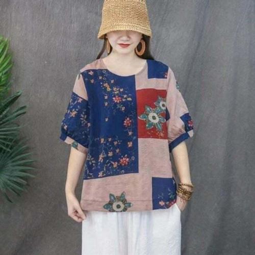 은창]내츄럴 보태니컬 자수 린넨 면 혼방 티셔츠 여름 상의 여름 퍼프 반팔 상의 블라우스 티셔츠 셔츠