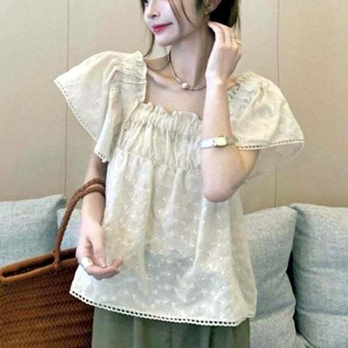 [셀럽하우스]여성 PUBD0539 데일리 레이스 퍼프 반팔 블라우스