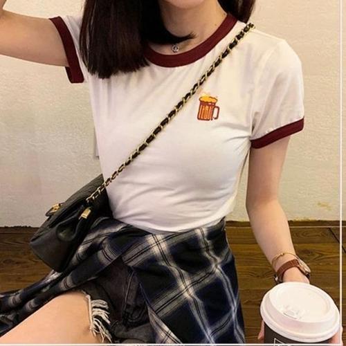 [다잇템]여성 슬림핏 컬러배색 사랑스러운 반팔티셔츠