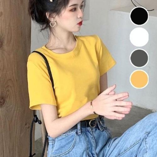[셀러허브_여성트랜드패션]ONM 슬림핏 라운드넥 크롭 반팔티셔츠 베이직 캐주얼