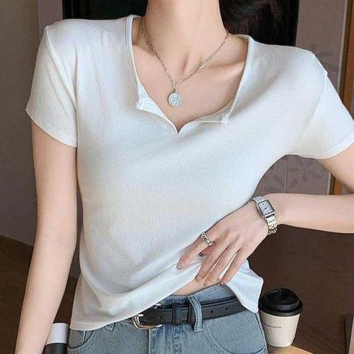 [셀러허브_여성트랜드패션]ONM 여자 4컬러 반오픈 슬림핏 여름 골지티 반팔티셔츠