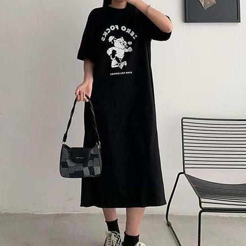 반팔 루즈핏 캐주얼 데일리 롱 반팔 원피스 롱원피스 레터링 롱 트임 반팔 원피스 / 빅사이즈 롱 만능원피스 박시 루즈핏 등원룩 홈웨어