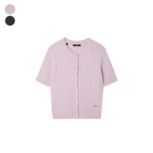 타니즈 이베인 쿨 라운드넥 퍼프소매 꽈배기 반팔 니트 가디건