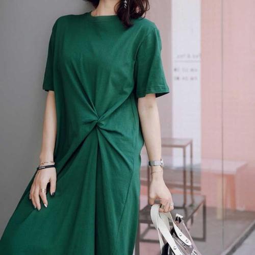 [오너클랜]인기상품 롱원피스 라운드넥 루즈핏 반팔 절개 허리꼬임 외출복 [WFFVZJF_250919]