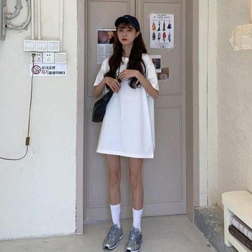 [셀러허브_여성트랜드패션]여자 3색 롱티 숏원피스 박스티 무지 반팔티셔츠
