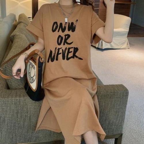 [오너클랜]인기상품 롱 반팔 트임 시원한원피스 레터링 원피스 [WD5EDE5_250919]