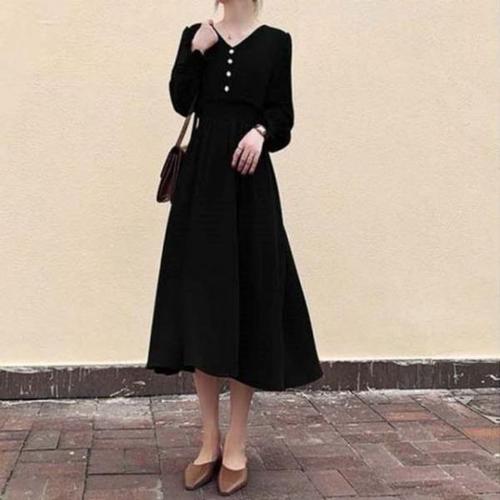 [오너클랜]인기상품 여성 벌룬소매 하객룩 A라인 반팔롱원피스 블랙원피스 [WDBBD59_250919]
