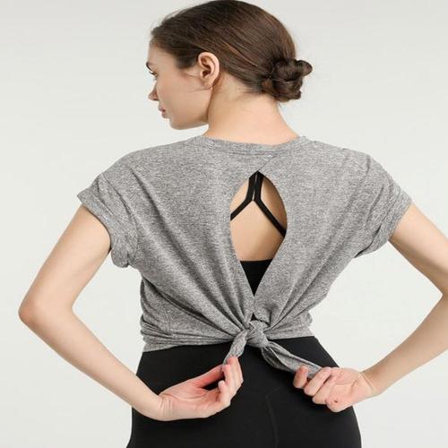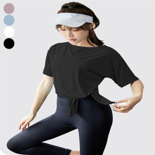 요가 상의 트임 반팔 커퍼업 티셔츠 묶는 옷 스판원단 요가복 사이드 트임 언발란스티