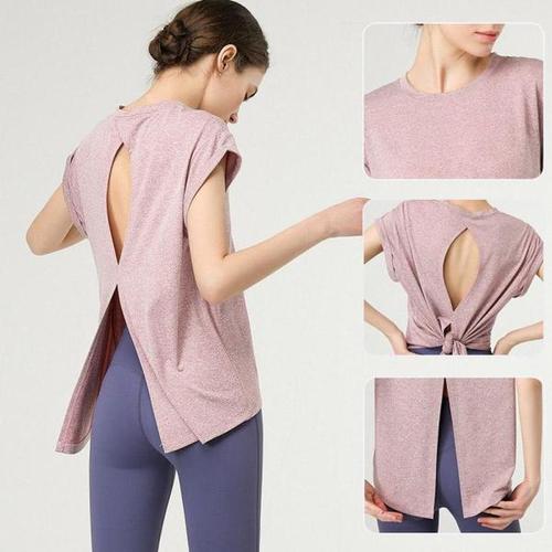 SIS-832 필라폴웨어 엑스반팔티절개셔츠 뒷절개 필라테스 웨어 상의 요가복상의